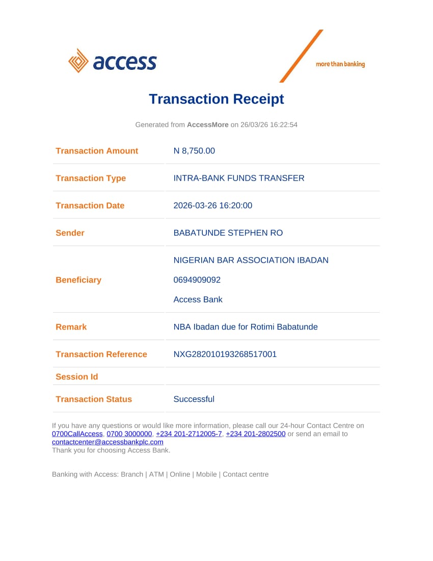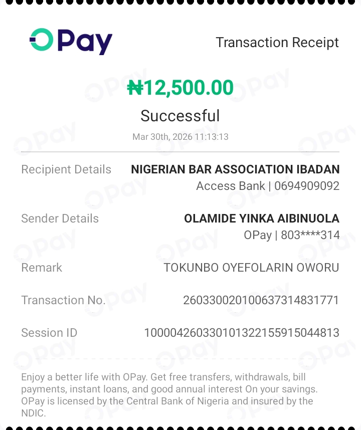 6 | BABATUNDE SAMUEL AKINOLA | 2007 | 057149 | babatundeakinolaesq@gmail.com | 08038836874 | 12,500 | 27/02/2026 | ||||