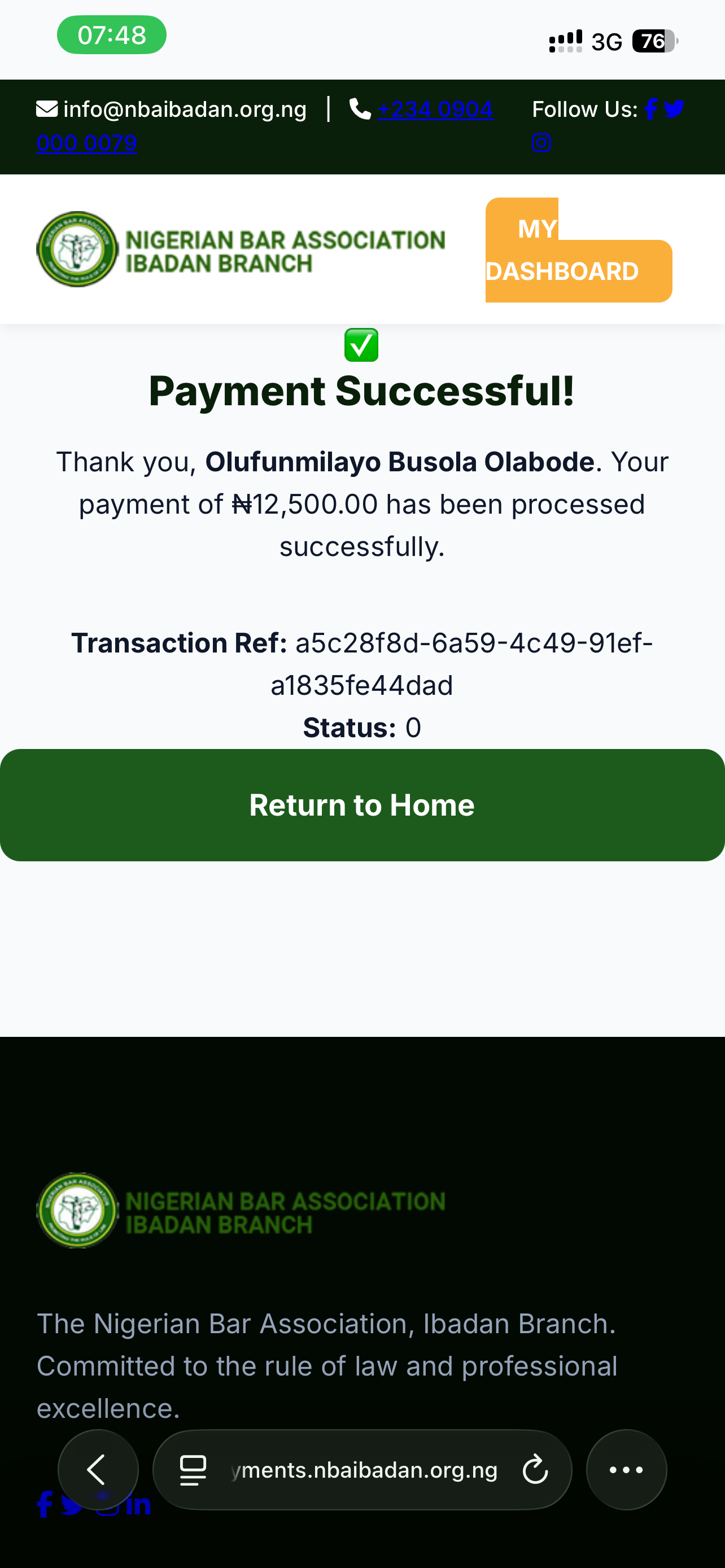 76 | WASIU OLORUNJUEDALO RAFIU | 2025 | SCN152353 | rafiuolorunjuedalo@gmail.com | 08134042351 | 4000 | 03/10/2025 | The 4000 for the branch dues includes Membership ID card fee | |||